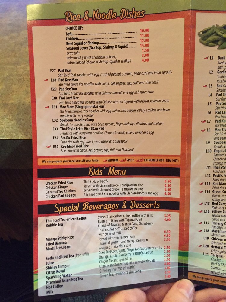 Stir fried broad rice noodles with onion, bell pepper, egg, chili and Thai basil.